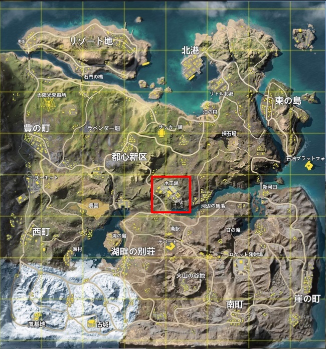 荒野行動の水工場は嵐の半島の中心に存在するサブエリアの一つ。