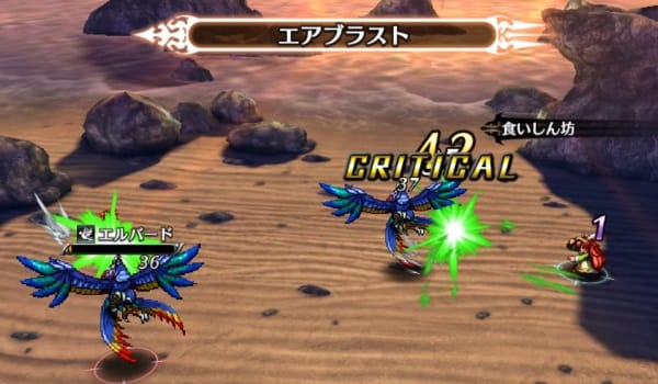 「エアブラスト」は風を前方に飛ばす樹属性攻撃。