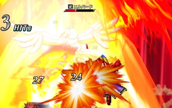 (前方広範囲の敵に炎属性の連続攻撃。)