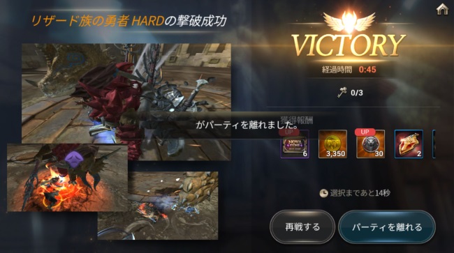 その後は「再戦する」か「パーティを離れる」を選択しよう。