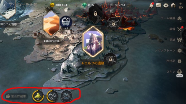 鉱山は各エリアを解放すると入手できる。詳細は以下の通り。