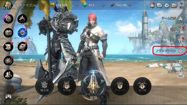 右メニューの「ノヴァストーン」で装着することができる。