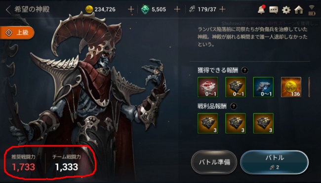 推奨戦闘力がチーム戦闘力より高い場合は、チーム戦闘力を強化していかねばならないことが多い。